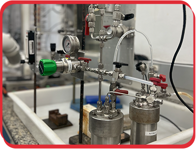 A atividade realiza ensaios de corrosão em condições extremas, como alta pressão e temperatura, com foco no setor de petróleo e gás, estudando seleção de materiais e mecanismos de corrosão.